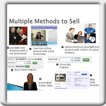 Multiple Methods to SellIn addition to traditional exposure by agents, properties may be promoted by a variety of event types that include:• Proxy (eBay style)• Buy Now• Offer Only• Sealed Bid• Dutch (quantity)• LIVE Simulcast (video streamed to online buyers) On-site and Ballroom• VIAF (Virtual Intelligent Auction Facility) – Computerized Auctioneer• Mini Bulk (mixed assets) Sales• Locked Pool Auction Sales• Allow buyers to hand select their bulk pool -